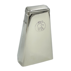 5d2 salsa handheld bongo cowbell low(campana) product number: 8" x 5.25" x 2.5" handheld, chrome pitched bell with bright overtones typically used in salsa bands by a bongo player or singer. Include Pouch