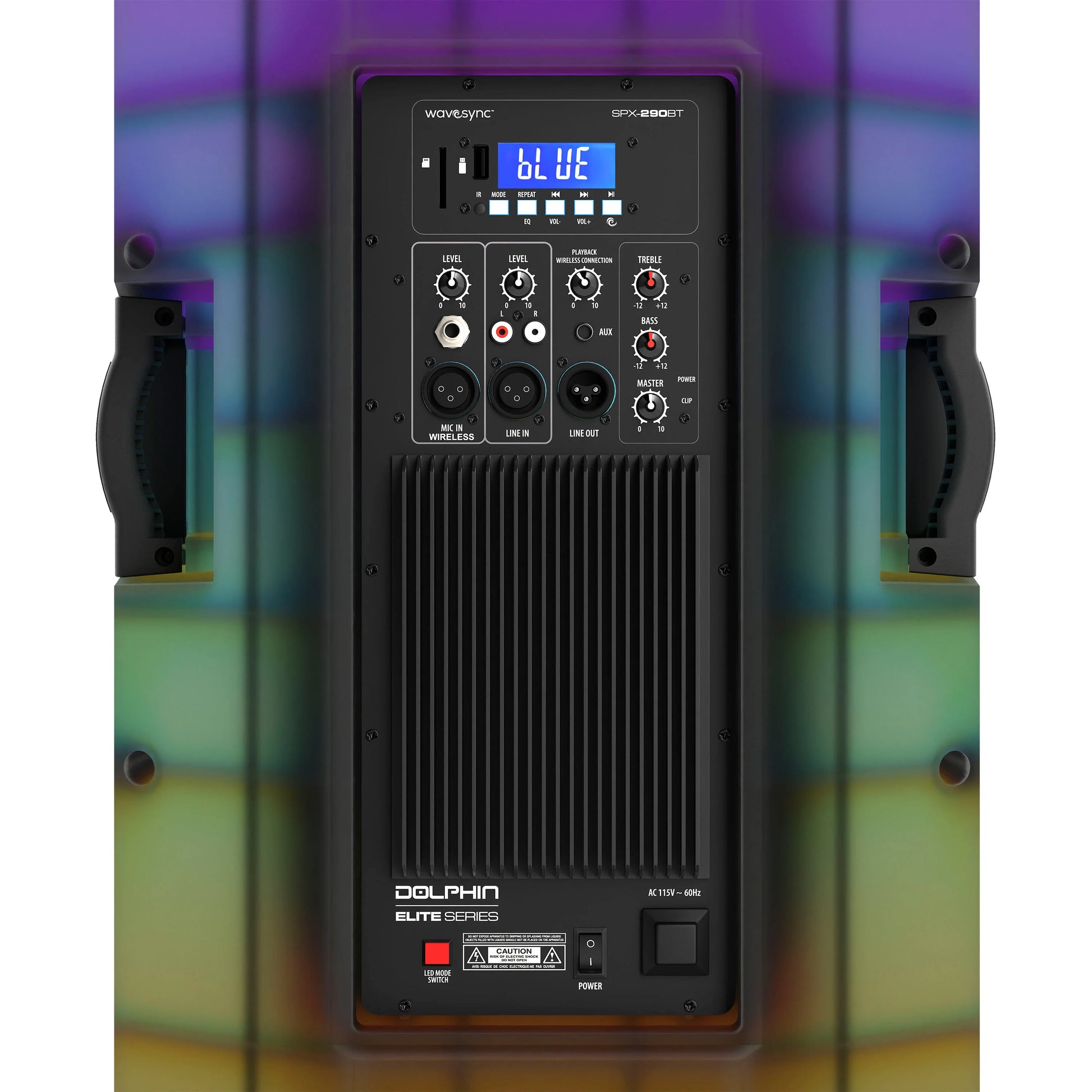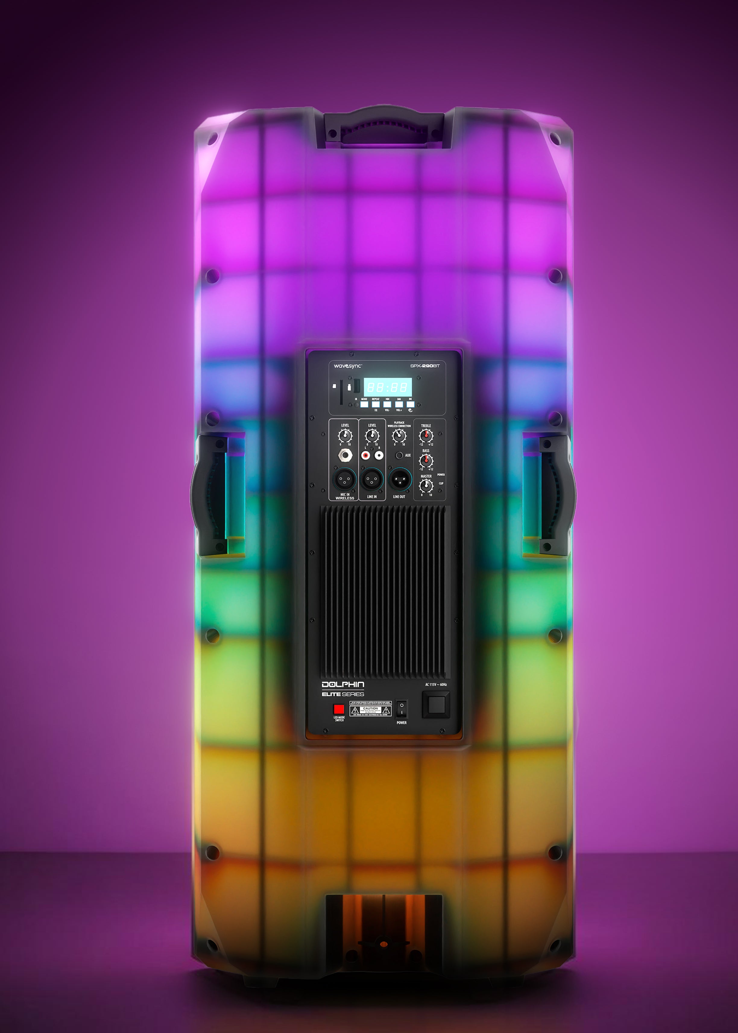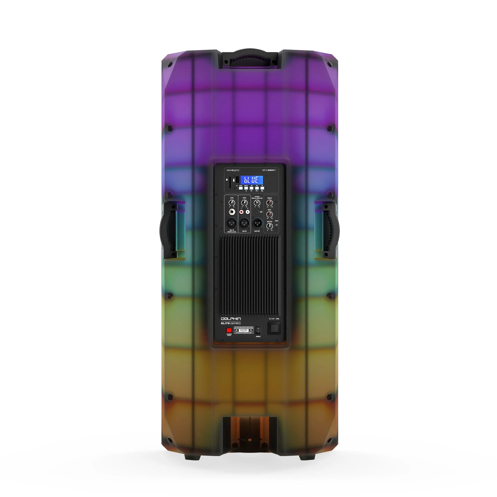 The SPX-290BT is a high-powered speaker system with dual 15” woofers, WaveSync™ technology, and syncable LED lights. Designed for DJs, musicians, and bass enthusiasts, it features XLR inputs for professional audio clarity and multiple options like Bluetooth, USB, and AUX for versatile connectivity. Perfect for anyone seeking powerful sound and an immersive experience at large events.