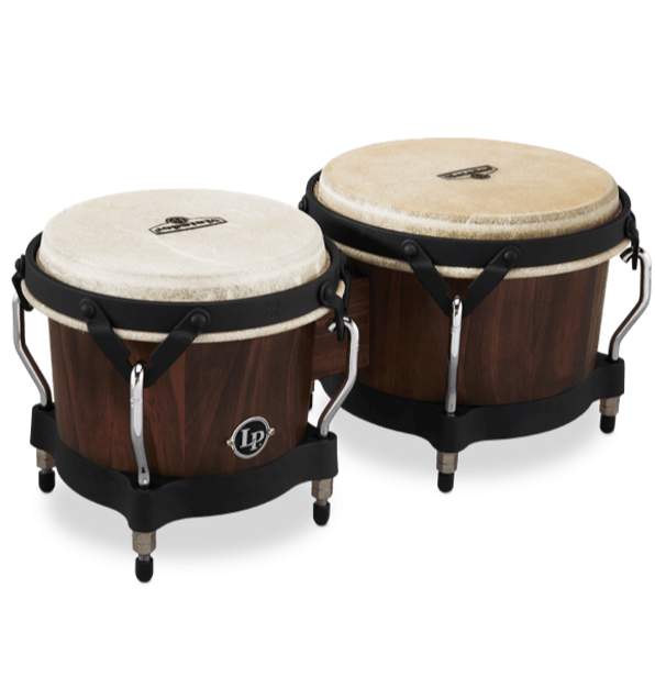 this lp matador bongo set, made to match the exclusive whiskey barrel cajon, features new zealand pine shells, rawhide heads and traditional rims.