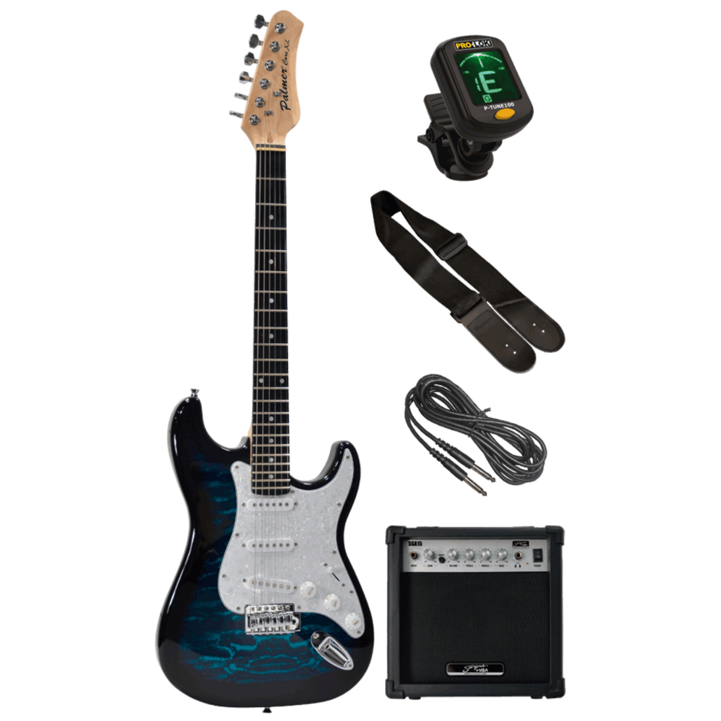 The Palmer All In One Guitar Pack delivers everything a guitarist needs to start playing immediately. This complete bundle features a solid poplar body electric guitar with a maple neck and fingerboard, equipped with 24 frets and chrome tuners for reliable performance. The versatile single-coil pickup configuration offers classic tonal clarity across multiple playing styles. Choose from three finishes: Faded Black Sunburst, Faded Red Sunburst, or Faded Blue. The included Starforce SGA15 amplifier provides 20 watts of power with a 40Hz-20kHz frequency response, while the Prolok P-TUNE100 tuner supports multiple instruments with chromatic and instrument-specific modes. Complete your setup with the padded guitar bag, instrument cable, and adjustable strap—everything required for immediate playability.