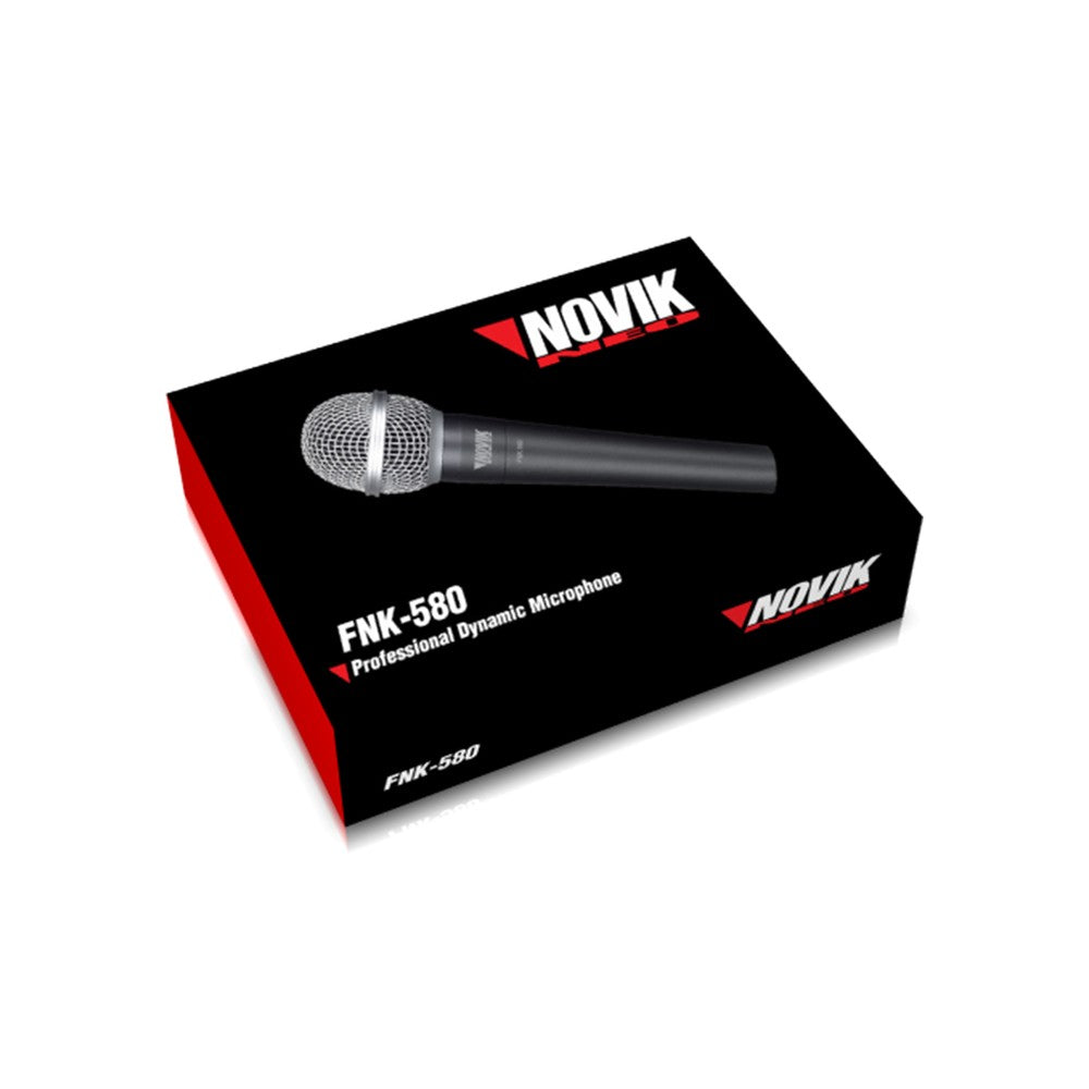 The Novik FNK 580 is a directional dynamic microphone featuring a frequency response that captures sounds with clarity and depth, ideal for lead vocals and instruments.