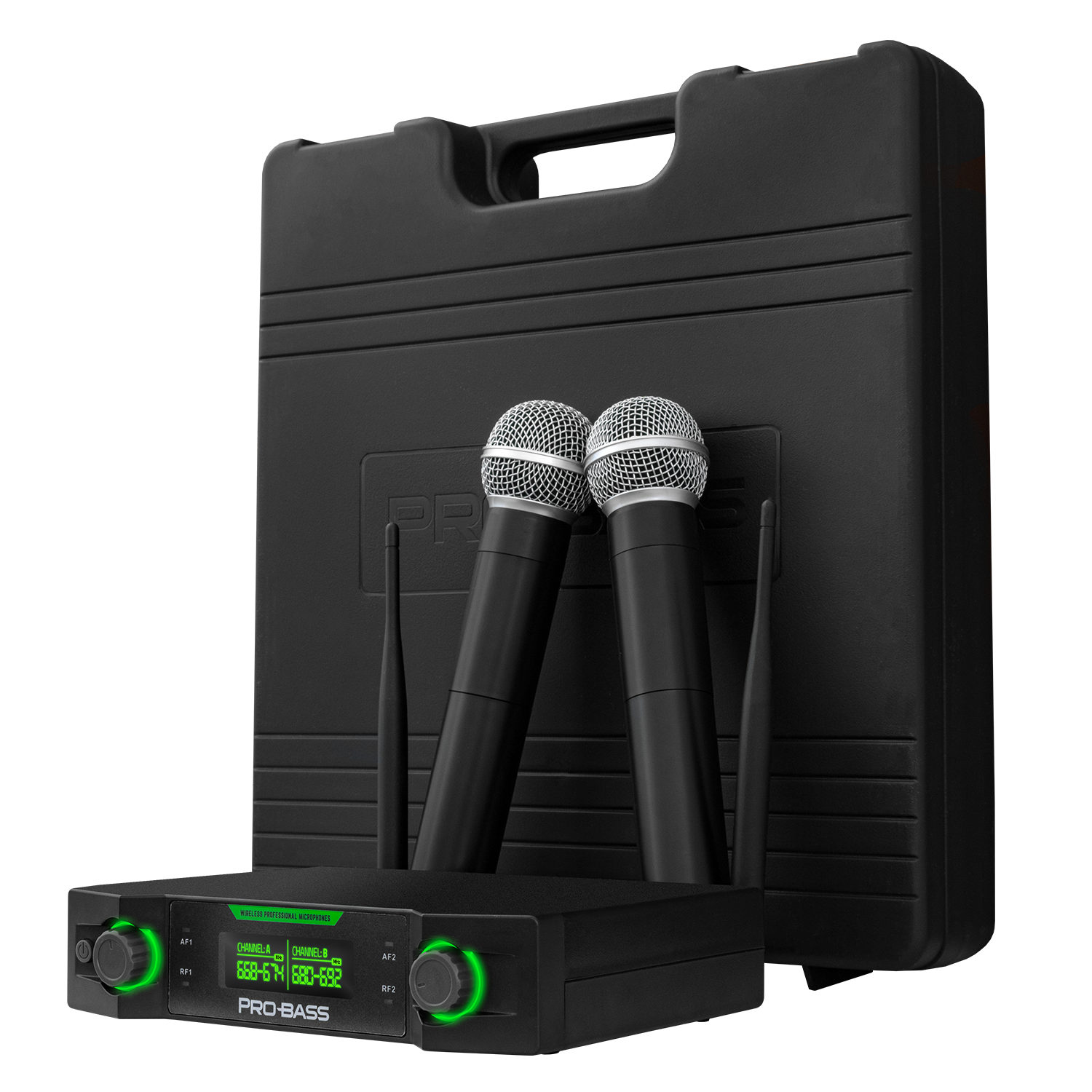 The Pro Bass Wireless Microphone UF-224 offers a wide effective range of up to 100 feet, allowing for versatile use. Equipped with two handheld microphones and 24 frequency channels, this microphone system ensures clear and uninterrupted audio. With 1/4 common outputs and two XLR independent outputs, it offers flexible connectivity options. Its sturdy plastic case provides safe and convenient storage.