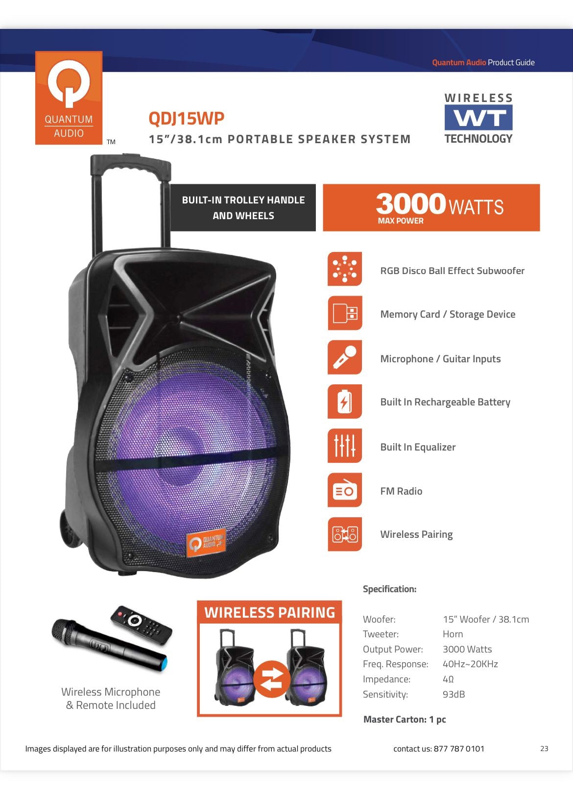 Quantum Audio 15” Rechargeable Speaker 3000 Watts QDJ-15