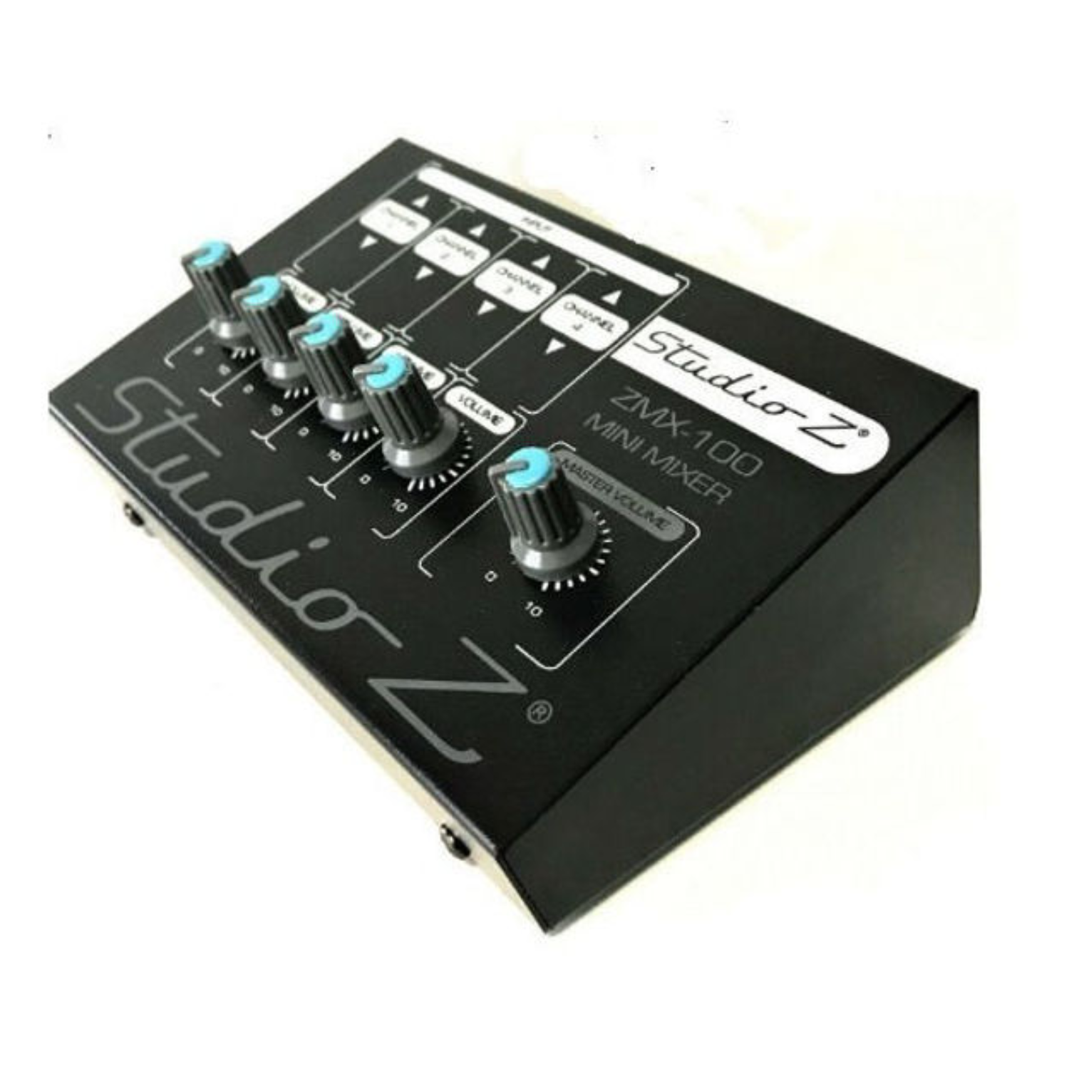 Elevate your audio game with the Studio Z Mini Mixer for Microphones ZMX-100. This sleek device boasts 4 mic inputs, 1 line output, and a powerful 20dB gain, delivering crystal-clear sound quality for your recordings. With a versatile power supply of DC 12V / AC 100-240V, this premium mixer is perfect for any setup.