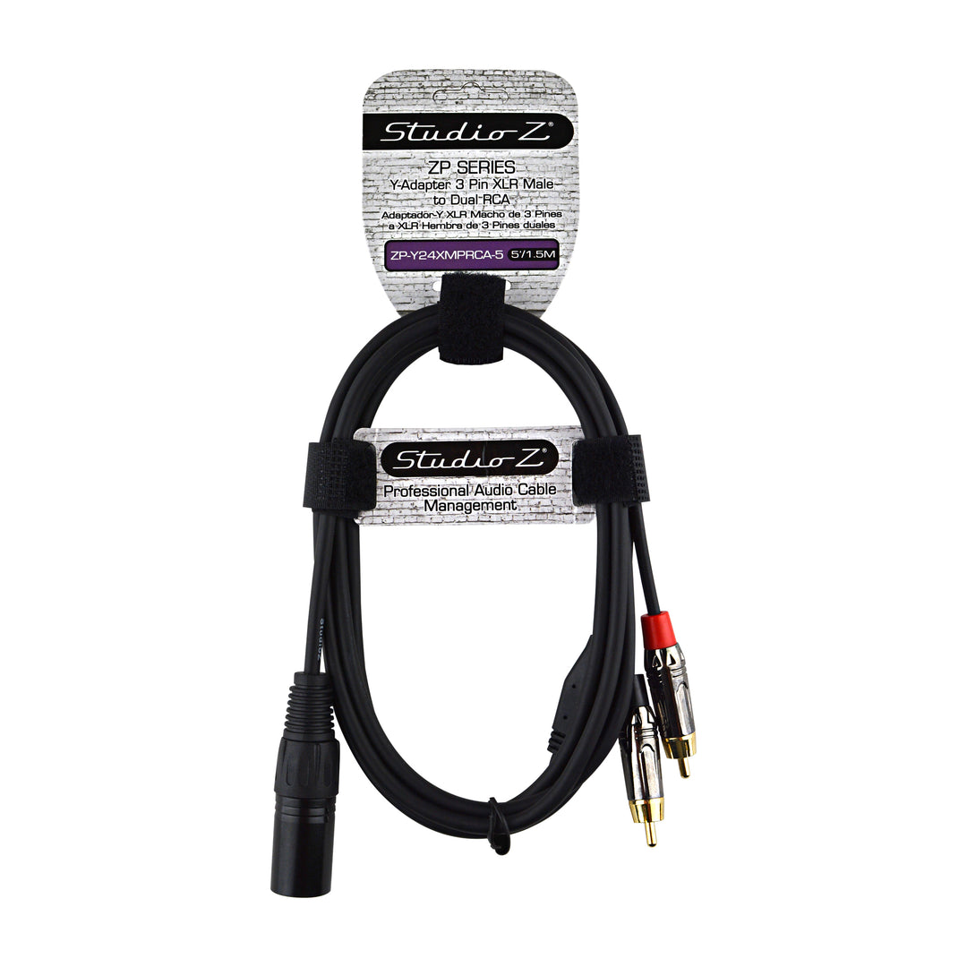 Studio Z Y-Adapter 3 Pin XLR Male Dual RCA 5 Ft Cable ZP-Y24XMPRCA-5